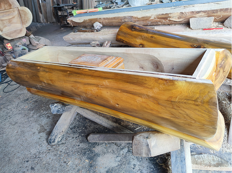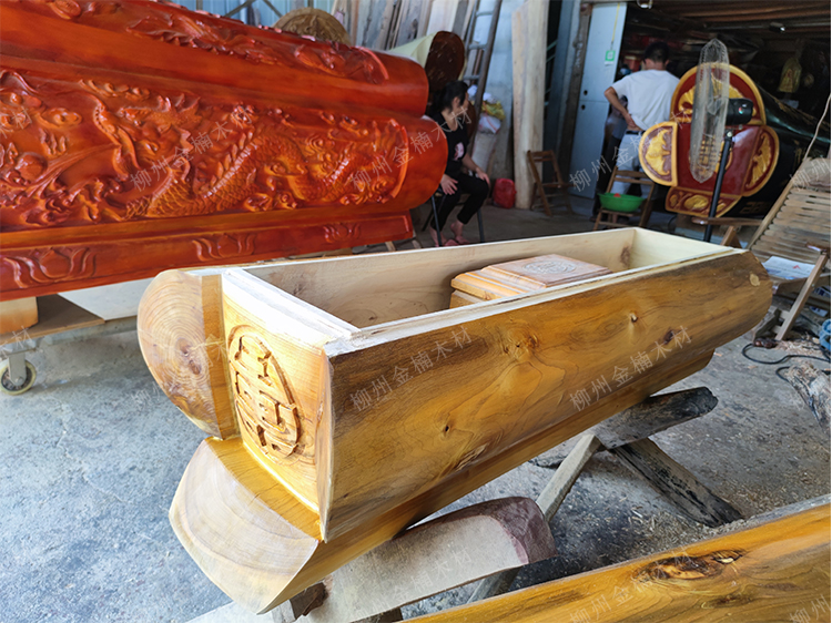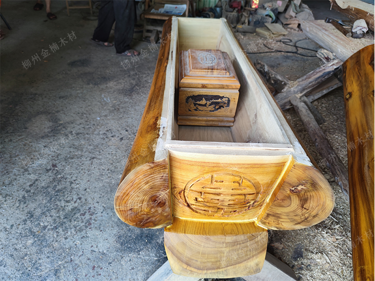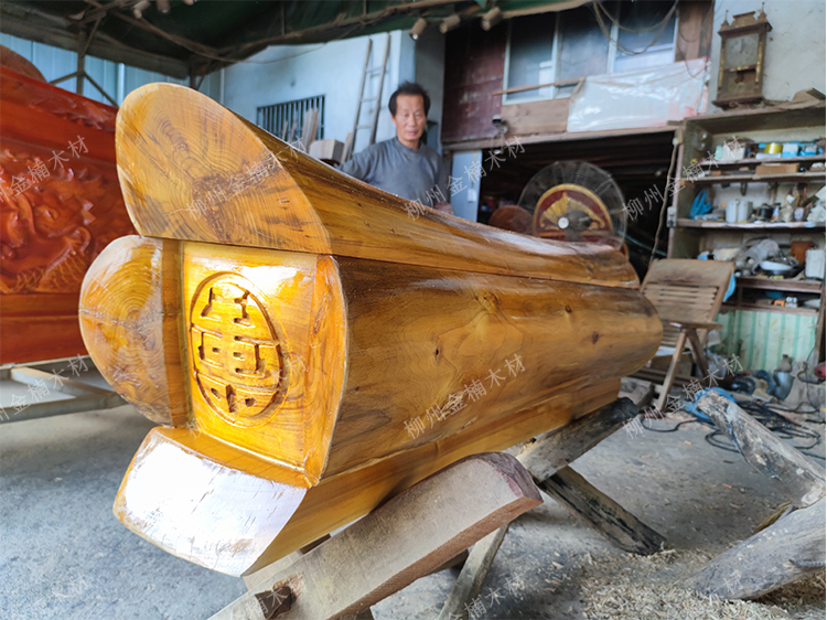 石家庄老客户张先生定制的一款迁坟捡骨用的小棺材,整体采用金丝楠木,打造,根据客户要求不雕刻,因为小棺材本身没有大官材厚实,所以再进行雕刻的话,就变得没有那么耐腐浊性了,张先生说,这是套骨灰盒用的,为了保护骨灰盒不受土壤腐蚀,做了一个双层保护措施,起到更好的防腐作用,如果光靠一个骨灰盒,很容易腐蚀,因为木质比较薄,就几块木板拼凑,几年就腐烂了,所以他们当地就有用小棺材套骨灰盒的这种方式,这一款定制的长度为1.5米,宽度50,高度53,这一副小的走物流运输,包送到