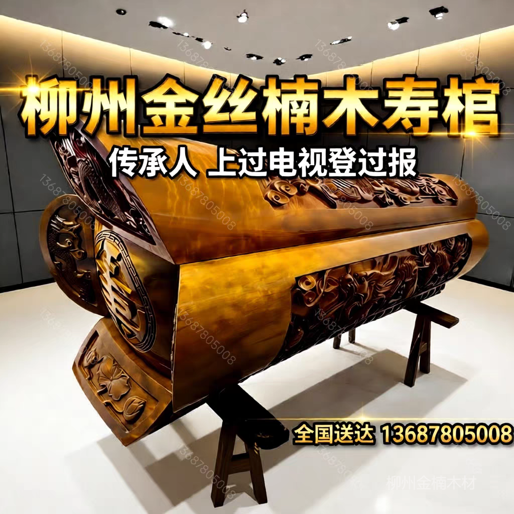 本品为正宗柳州金丝楠木雕刻棺材,精选名贵金丝楠木原木打造,是高端殡葬寿材、家族定制寿棺的上乘之作。金丝楠木作为传统名贵木材,质地坚硬细腻、纹理自然流畅,自带温润光泽与淡雅木香,具备天然防腐、防蛀、防潮、耐腐朽的特性,入土长久不腐、不开裂、不变形,是制作高端棺木的理想材质,也是传统殡葬文化中备受推崇的寿材原料。